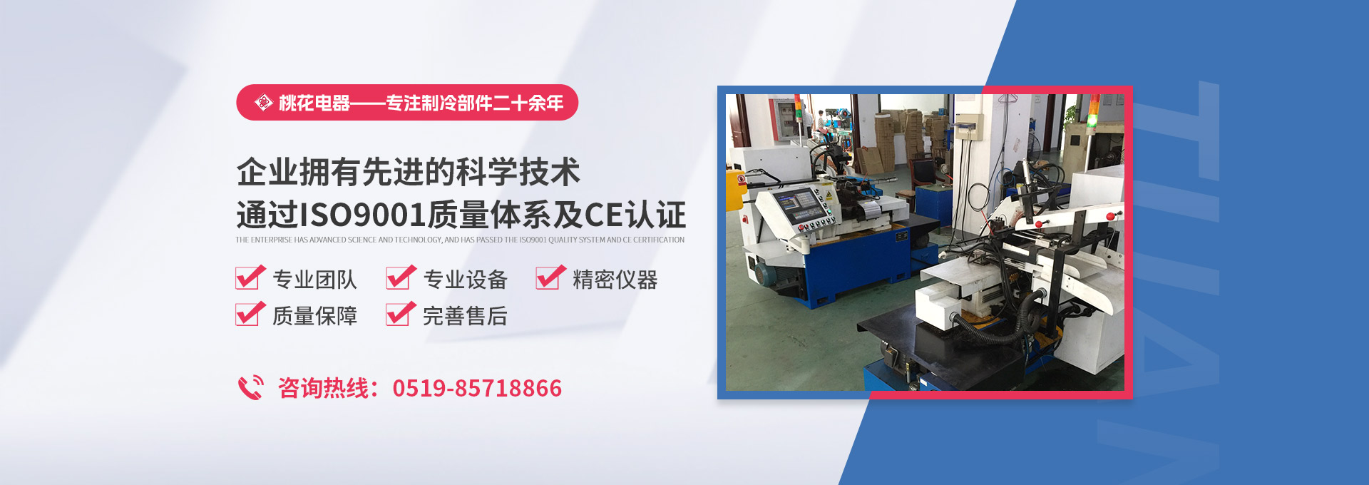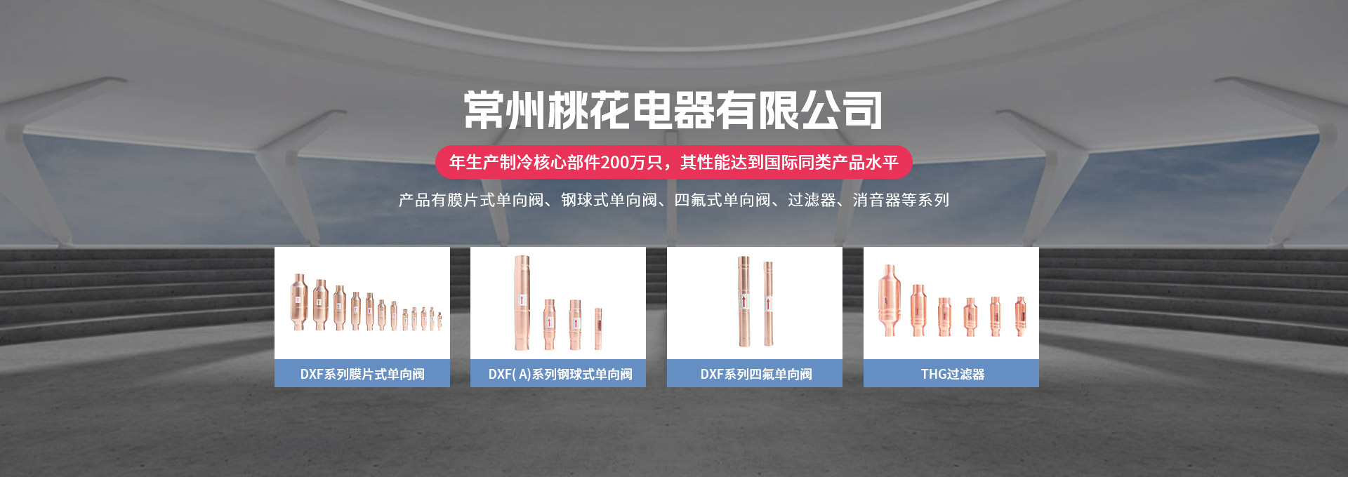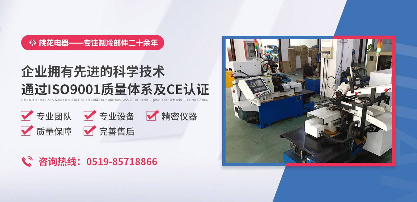 常州桃花電器有限公司地處中國長江“金三角”之稱的上海至南京高速公路、城際高鐵、常州高新經(jīng)濟技術(shù)開發(fā)區(qū)路段,交通便利、技術(shù)力量十分雄厚。它是集研究、開發(fā)設(shè)計、制造和經(jīng)營制冷核心部件的企業(yè),主要生產(chǎn)中央空調(diào)上使用的制冷部件。產(chǎn)品有膜片式單向閥、鋼球式單向閥、四氟式單向閥、過濾器、消音器等系列。年生產(chǎn)制冷核心部件200萬只,其性能達到國際同類產(chǎn)品水平。 企業(yè)擁有先進的科學(xué)技術(shù)、國際先進的生產(chǎn)加工設(shè)備和精密的檢測儀器,并已通過ISO9001質(zhì)量體系及CE認證,公司歷史悠久,2000年起,經(jīng)過長期積累、沉淀,經(jīng)驗豐富,從而保證了產(chǎn)品的高質(zhì)量、高性能、高耐用性。企業(yè)產(chǎn)品在國內(nèi)外市場具有較高的知名度,深受眾多中外品牌制冷客商的好評。主要客戶有約克、麥克維爾、美的、開利、特靈、頓漢布什、清華同方、天加等.并出口北美、歐洲、東南亞等地區(qū)。 高品質(zhì)產(chǎn)品是企業(yè)的保證,周到服務(wù)是合作友誼的承諾,企業(yè)本著“求